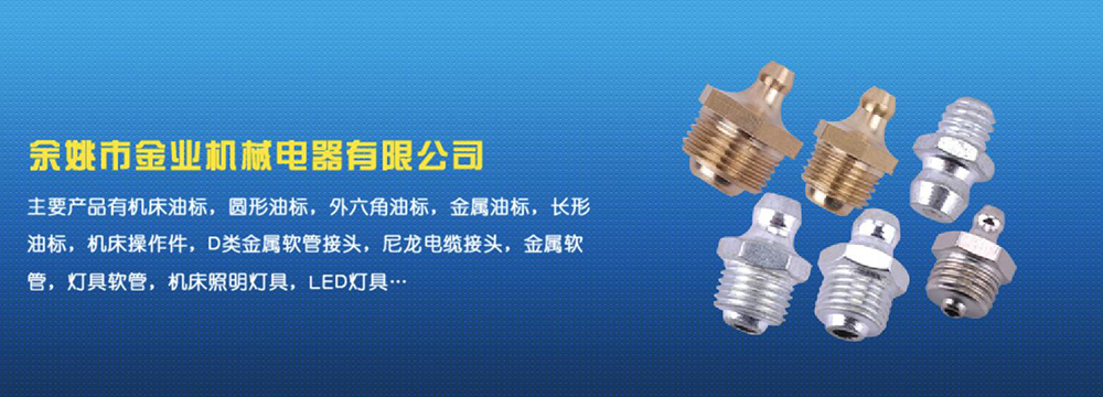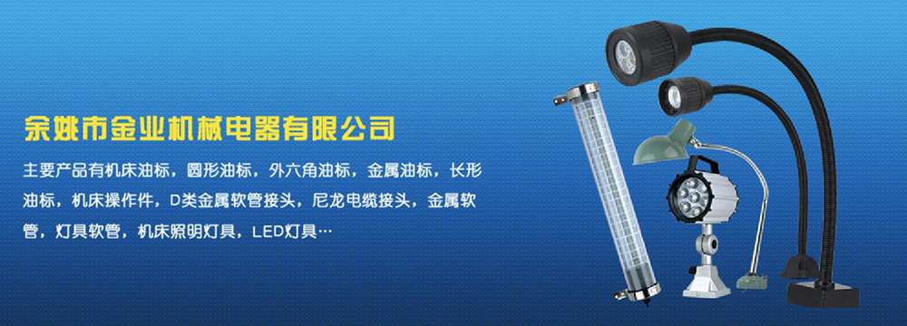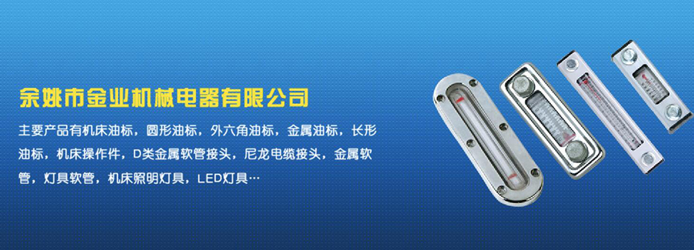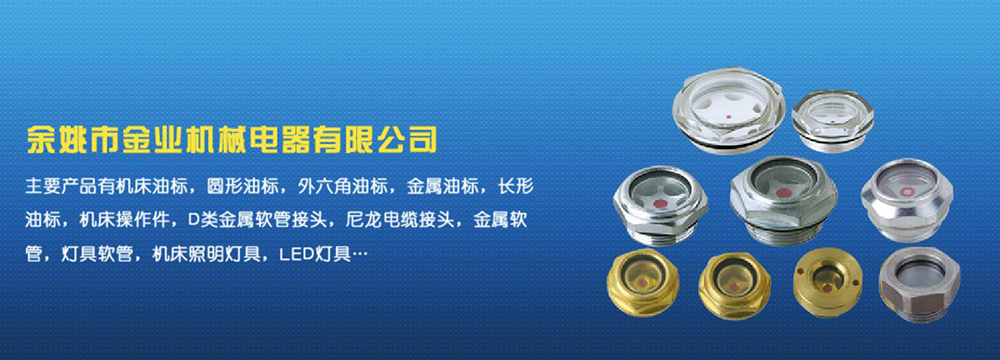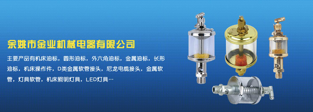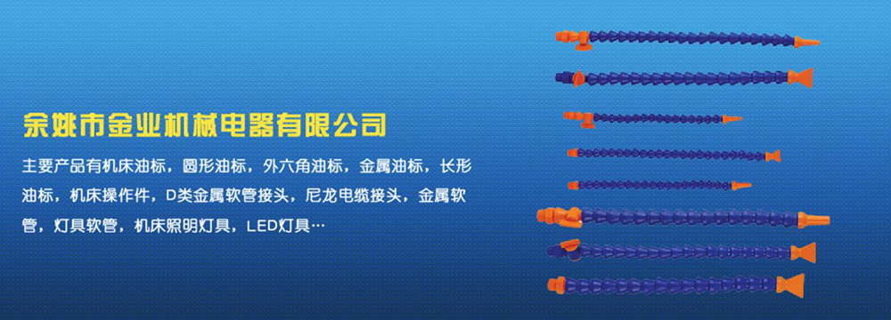 余姚市金業(yè)機械電器有限公司主要產(chǎn)品有機床油杯,圓形油標,外六角油標,金屬油標,長形油標,機床操作件,D類金屬軟管接頭,尼龍電纜接頭,金屬軟管,燈具軟管,機床照明燈具,LED燈具,DGT型線路軟管防護套,TL型鋼制電纜手軌,電纜尼龍拖鏈,可調塑鋼冷卻管等產(chǎn)品,規(guī)格齊全,全部自制。望國內外客戶前來考察:共同發(fā)展…